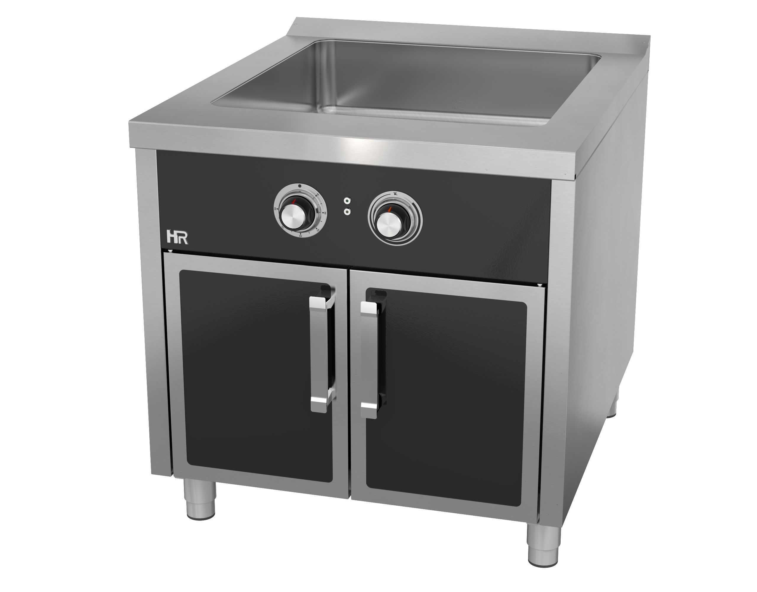 Leistungsstarkes Bain-Marie-Standgerät mit 6.6 kW Leistung für hohe Kapazitäten Perfekt für Restaurants und Großküchen die große Mengen Speisen warmhalten müssen.