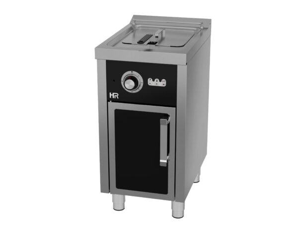 Elektrische Fritteuse für den Dauereinsatz mit schneller Aufheizung und konstanter Öltemperatur Robustes Edelstahlgehäuse einfache Reinigung und sichere Bedienung.