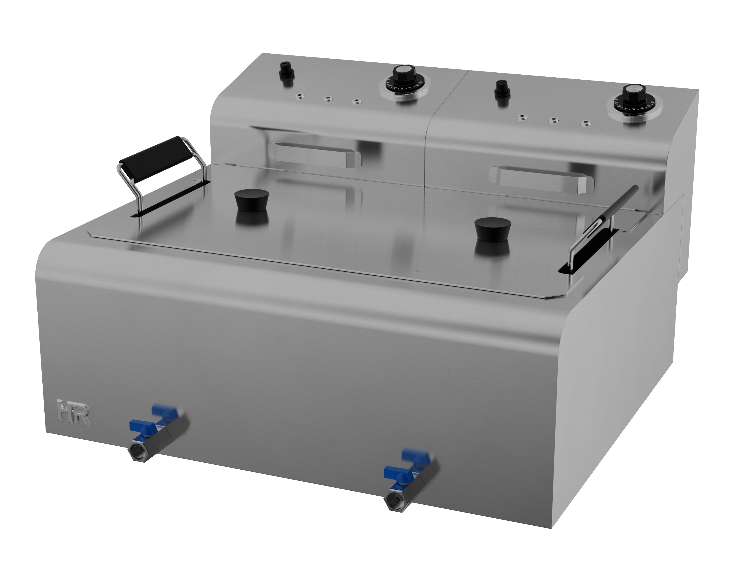 Diese Fritteuse bietet doppelte Heizleistung und eignet sich perfekt für den professionellen Dauerbetrieb.
