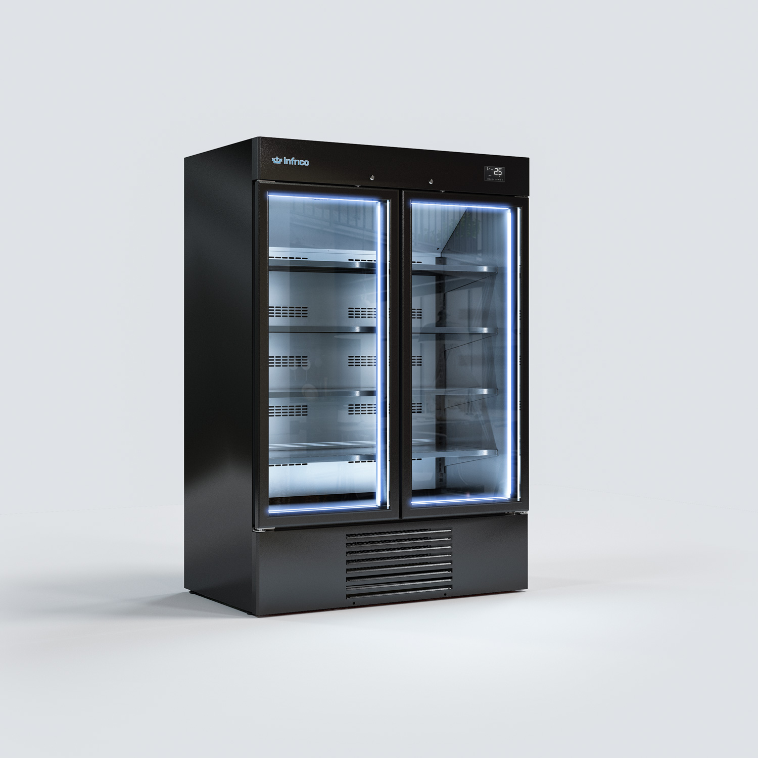 Der ERC130 Wandkühlschrank mit 2 Glastüren der Minimarkt-Serie ist die ideale Lösung für die Präsentation und Kühlung von Produkten in kleinen Geschäften oder Supermärkten. Mit seiner effizienten Umluftkühlung und dem umweltfreundlichen Kältemittel R-290 sorgt er für eine gleichmäßige Temperaturverteilung und hohe Energieeffizienz.