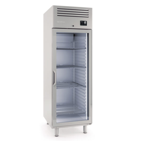Der GN 2/1 AGB 700/1400L Serie Kühl- und Gefrierschrank mit Glastür ist die ideale Lösung für professionelle Küchen, die eine effiziente und zuverlässige Kühlung benötigen. Ausgestattet mit modernster Technologie, bietet dieser Schrank eine verbesserte Energieeffizienz dank des umweltfreundlichen Kältemittels R-290 und eines elektronischen Lüfters.