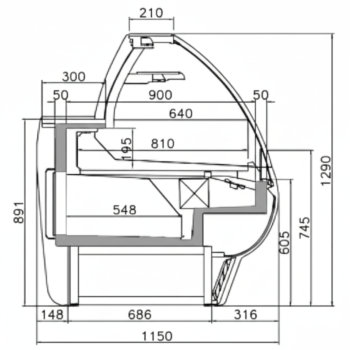 - Fleischtheke mit integrierter Unterbaukühlung