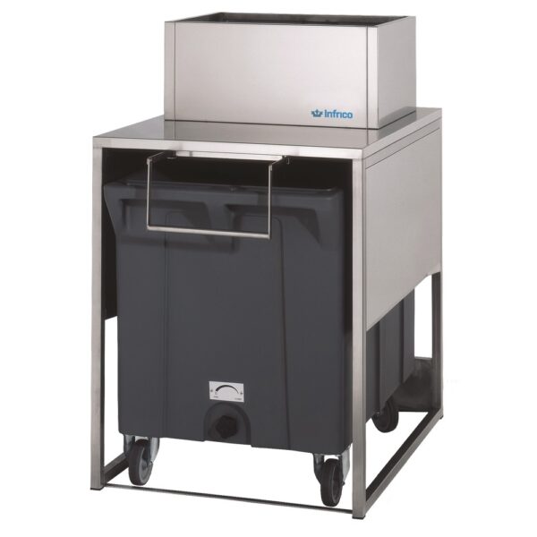 Die INFRICO RBI100 Eiswürfelbereiter-Aufbewahrungseinheit ist eine professionelle Lösung zur Lagerung von Eiswürfeln und Crushed Ice. Sie ist ideal für den Einsatz in Gastronomie, Bars, Hotels und Eventbereichen geeignet. Diese Einheit dient als hygienischer und isolierter Eisbehälter, der unter oder neben Eiswürfelbereitern platziert werden kann.