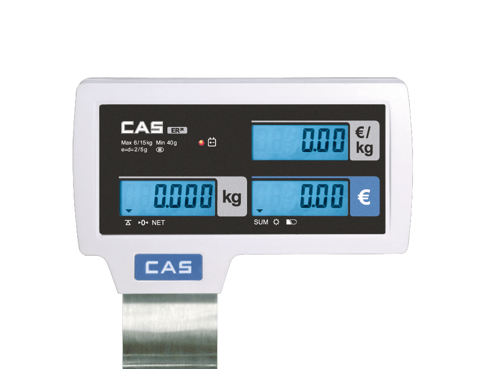 Die CAS ER JUNIOR überzeugt als budget-optimierte Ladenwaage mit hervorragendem Preis-/Leistungsverhältnis. Dank SmartPower-Option kann sie wahlweise mit Netzteil, Batterie oder optionalem Akku betrieben werden – ideal für Wochenmärkte und Ladengeschäfte.